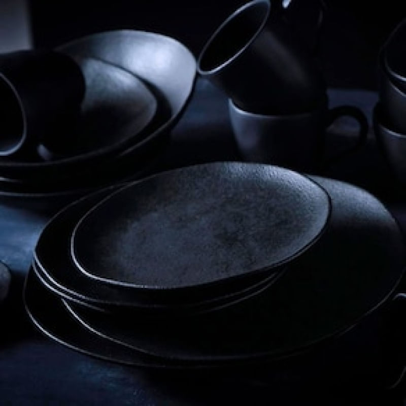 Conjunto com 6 Pratos Rasos Porto Brasil Orgânico Carbon em Stoneware 26,5cm Preto REF: 159382_Sicredi