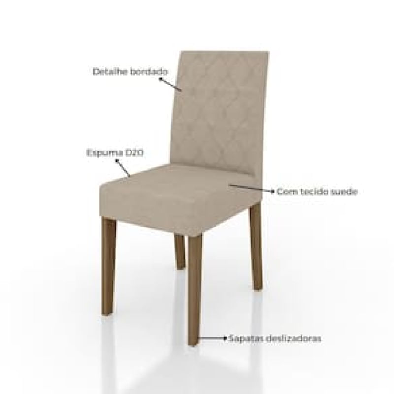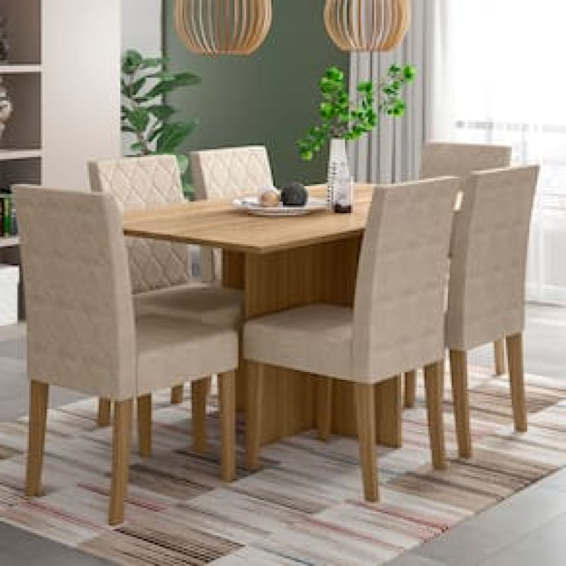 Casa e DecoraçãoUtilidades DomésticasAcessórios de CozinhaConjunto de Mesa de Jantar Poliman Helo com 6 Cadeiras - 160 cm de Largura - Carvalho/Suede Bege
