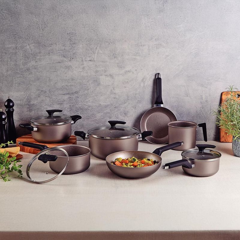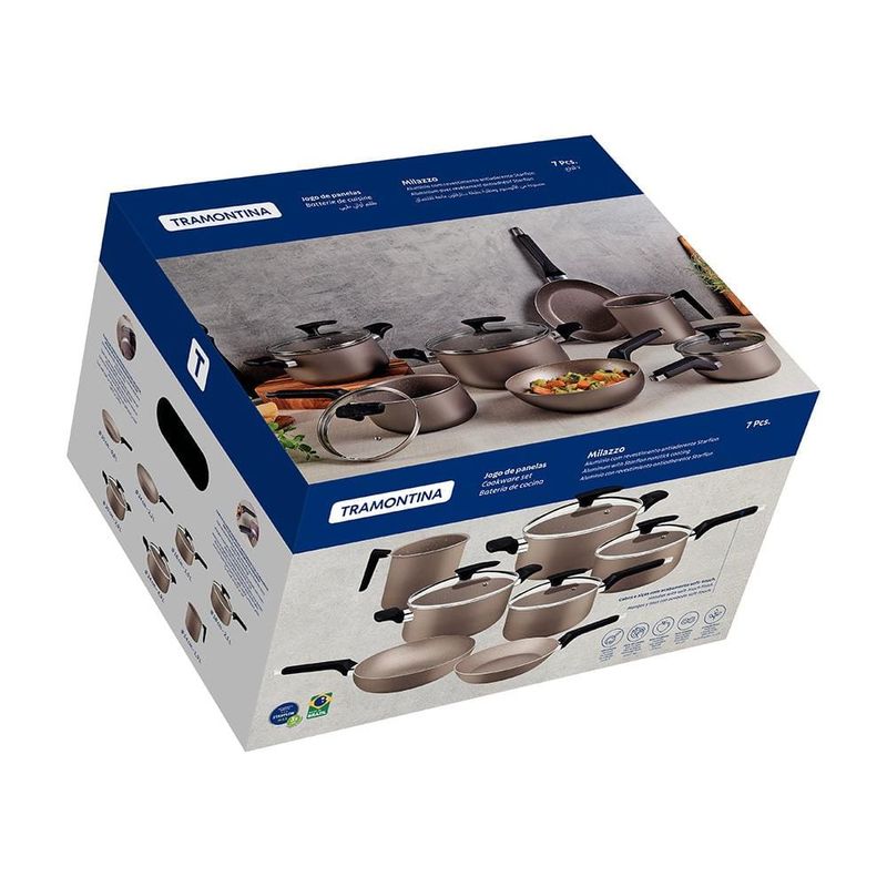 Conjunto de Panelas 7 Peças Tramontina Milazzo em alumínio com revestimento em antiaderente Starflon Max - Amêndoa REF: 760980_Sicredi