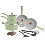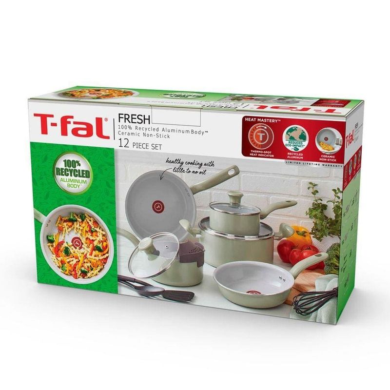 Casa e DecoraçãoUtilidades DomésticasJogo de PanelasConjunto de Panelas Tefal Recycled Ceramic 9 Peças Revestimento Cerâmico Antiaderente Verde