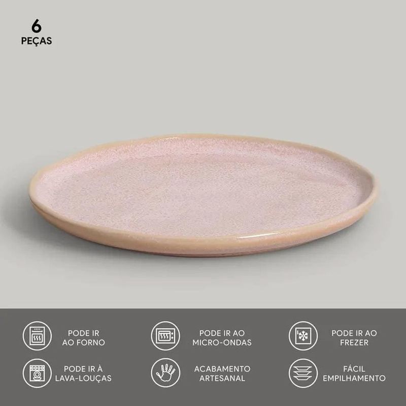 Casa e DecoraçãoUtilidades DomésticasAparelhos para JantarConjunto de Pratos de Sobremesa Porto Brasil Bio Litchi Rosa Claro 21,5cm - 6 Peças