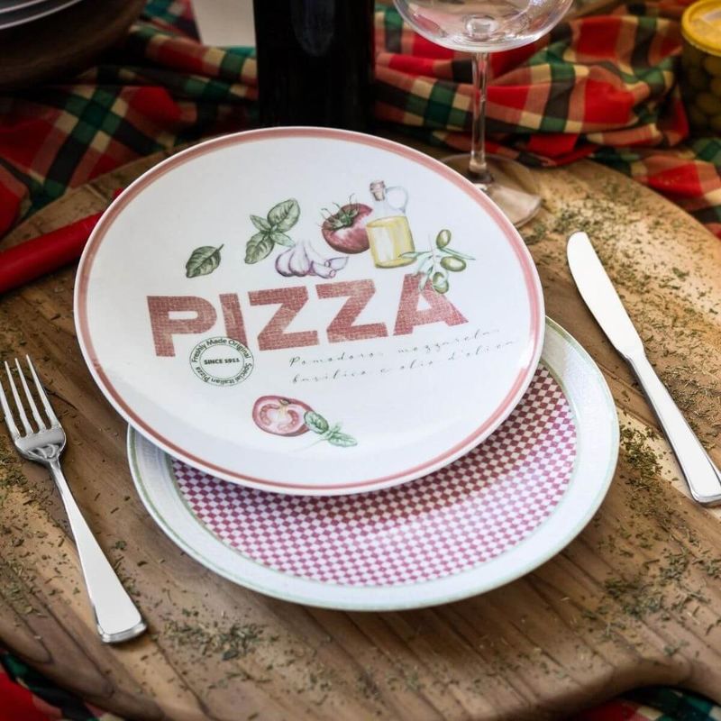 Conjunto de Pratos para Pizza 6 Peças Mesa Posta Tramontina 25cm Porcelana Decorada Milano REF: 7794464795482