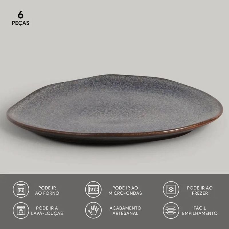 Conjunto de Pratos Rasos Ovais Porto Brasil Orgânico Titanium Azul Escuro 31cm - 6 Peças REF: 7908416622546