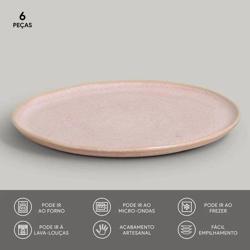 Conjunto de Pratos Rasos Porto Brasil Bio Litchi Rosa Claro 29cm 6 Peças REF: 7908416621754