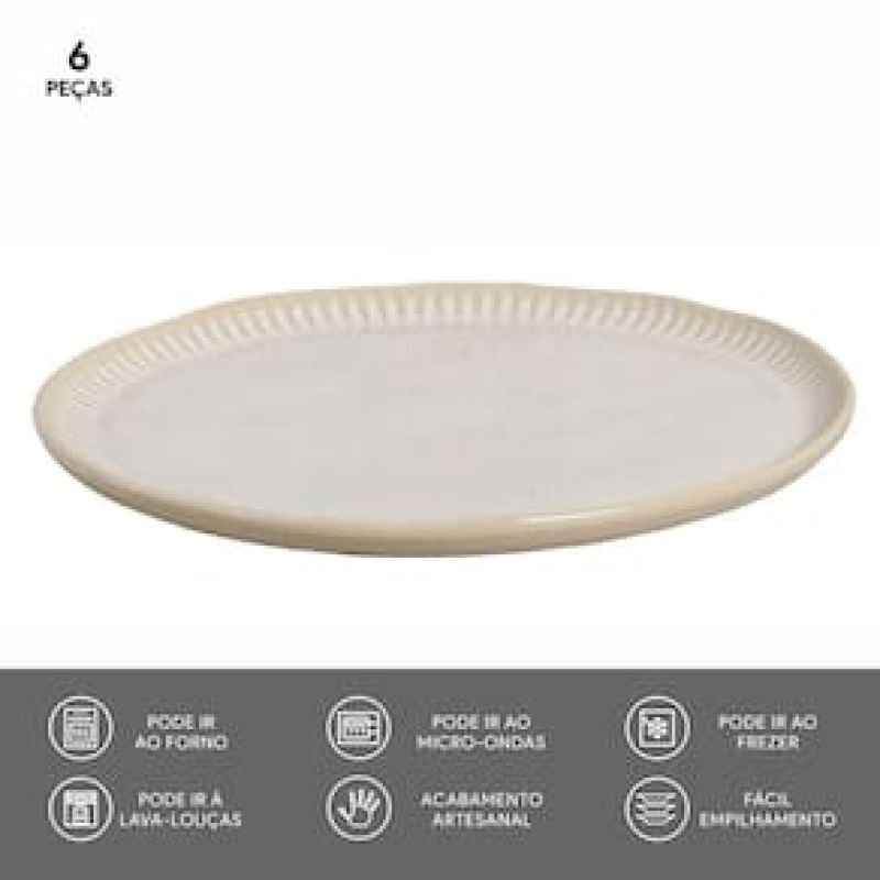Casa e DecoraçãoUtilidades DomésticasAparelhos para JantarConjunto de Pratos Rasos Porto Brasil Linhas Latte com 6 Peças - Bege