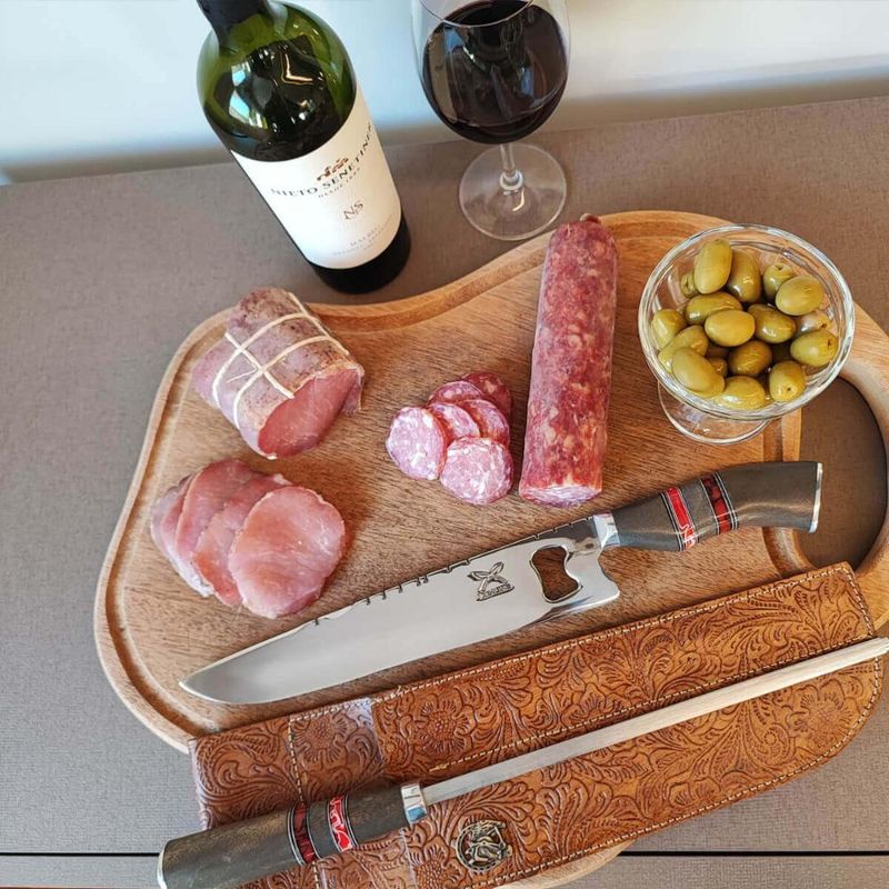Casa e DecoraçãoUtilidades DomésticasUtensílios de ChurrascoConjunto Faca Abridor e Chaira 10' Churrasco Artesanal Cabo Madeira Imbuia Aço Inox Tradicional