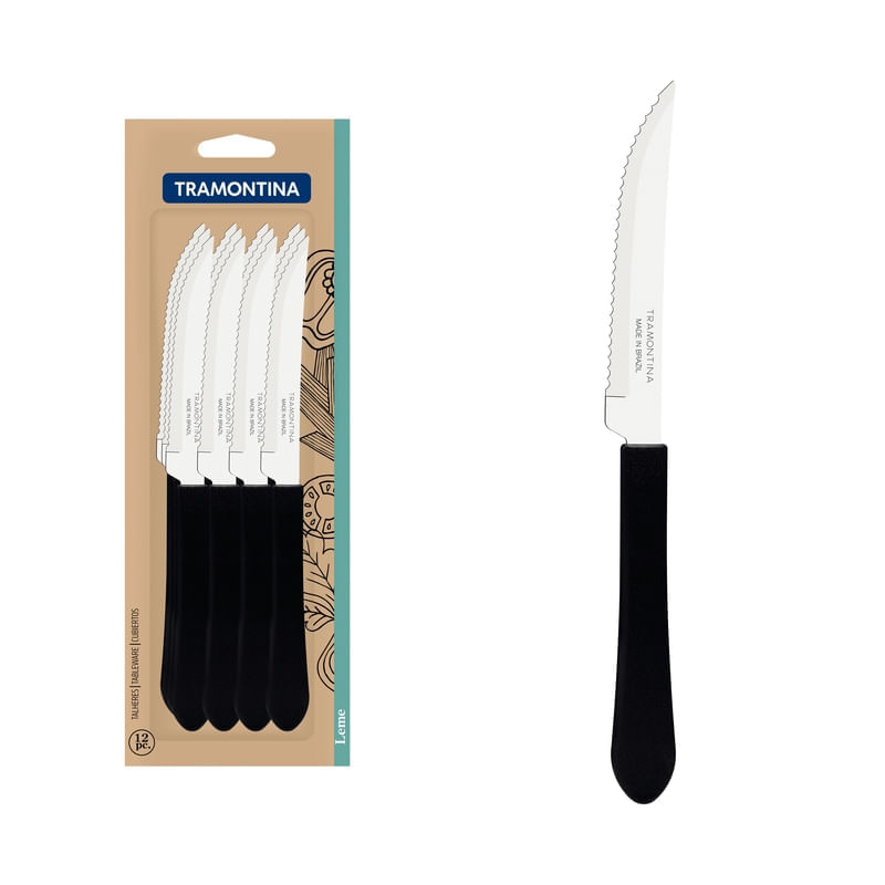 Conjunto Facas Churrasco Inox 12 Peças Leme Preto Tramontina REF: 222388_Sicredi