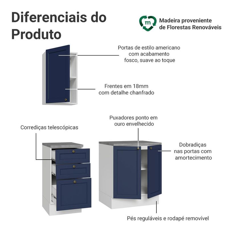 Casa e DecoraçãoMóveisBalcão e GabineteConjunto Gabinete para Banheiro 110cm 3 Gavetas 3 Portas Branco/Azul Vik Madesa 01