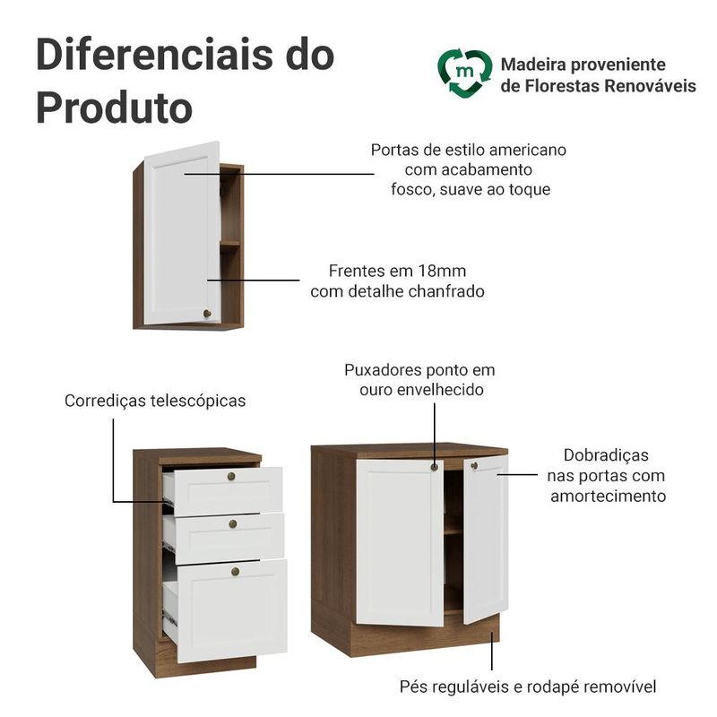 Casa e DecoraçãoMóveisBalcão e GabineteConjunto Gabinete para Banheiro 110cm 3 Gavetas 3 Portas Rustic/Branco Vik Madesa 01