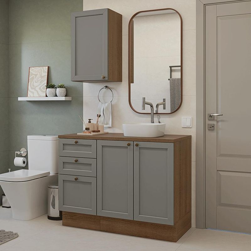 Casa e DecoraçãoMóveisBalcão e GabineteConjunto Gabinete para Banheiro 110cm 3 Gavetas 3 Portas Rustic/Cinza Vik Madesa 01