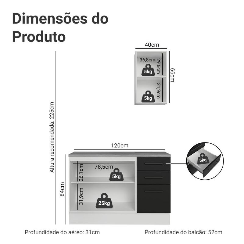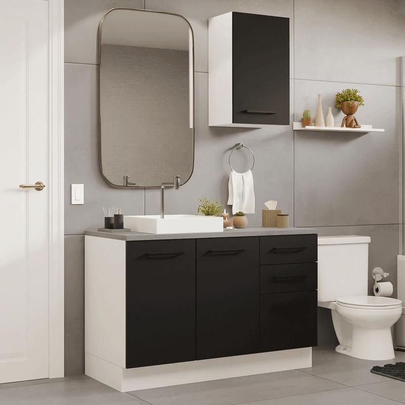 Casa e DecoraçãoMóveisBalcão e GabineteConjunto Gabinete para Banheiro 120cm 3 Portas 3 Gavetas Branco/Preto Agata Madesa 01
