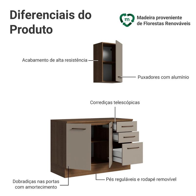 Casa e DecoraçãoMóveisBalcão e GabineteConjunto Gabinete para Banheiro 120cm 3 Portas 3 Gavetas Rustic/Crema Agata Madesa 01