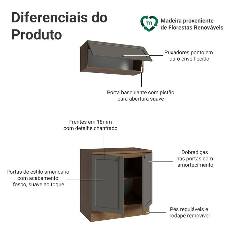 Casa e DecoraçãoMóveisBalcão e GabineteConjunto Gabinete para Banheiro 80cm 3 Portas Rustic/Cinza Vik Madesa 02