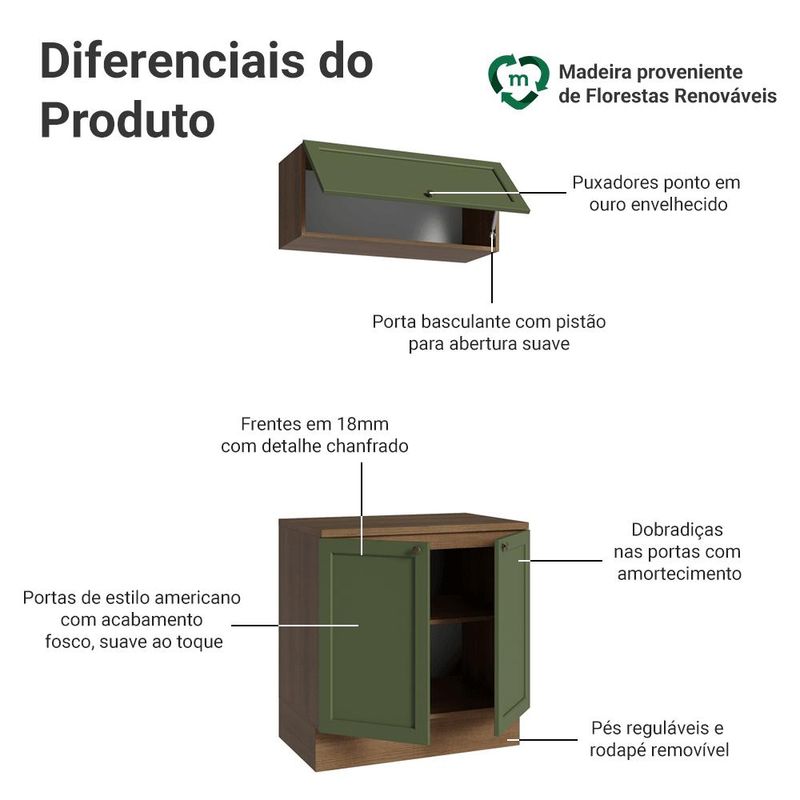 Conjunto Gabinete para Banheiro 80cm 3 Portas Rustic/Verde Vik Madesa 02 REF: 7891760097859