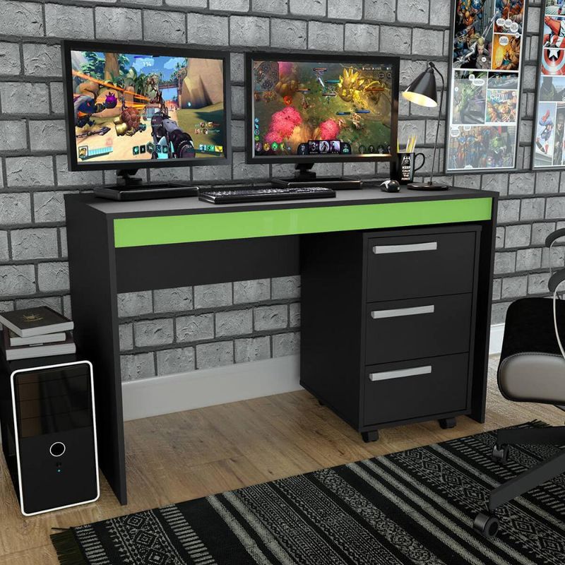 Conjunto Gamer Mesa e Gaveteiro Nova Mobile Preto e Verde REF: 7898463864894