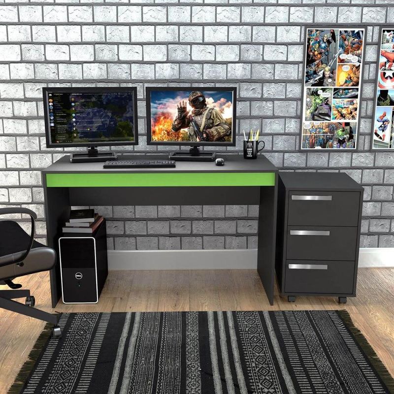 Casa e DecoraçãoMóveisMesaConjunto Gamer Mesa e Gaveteiro Nova Mobile Preto e Verde
