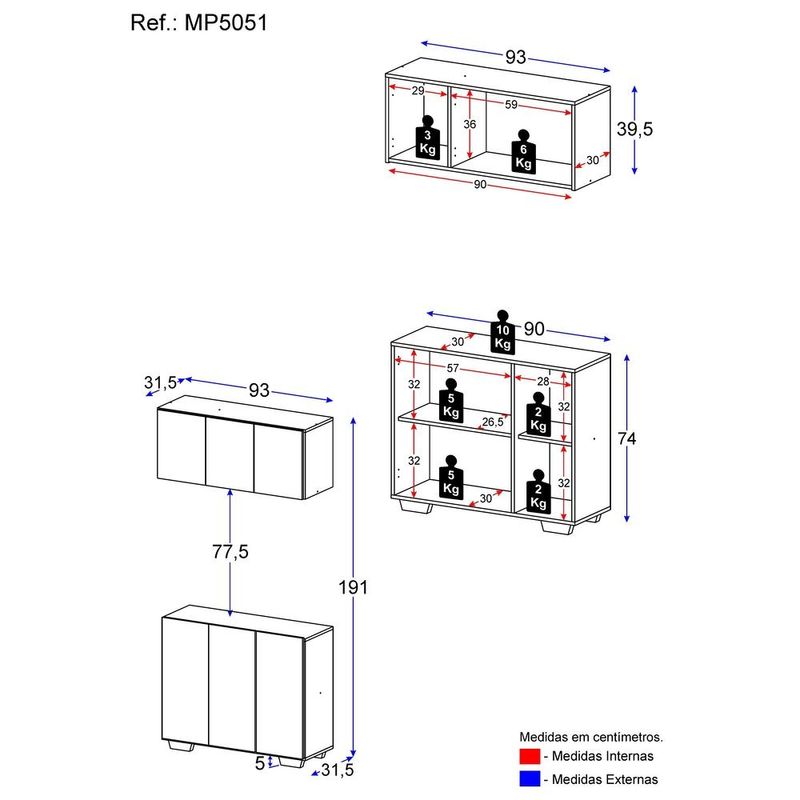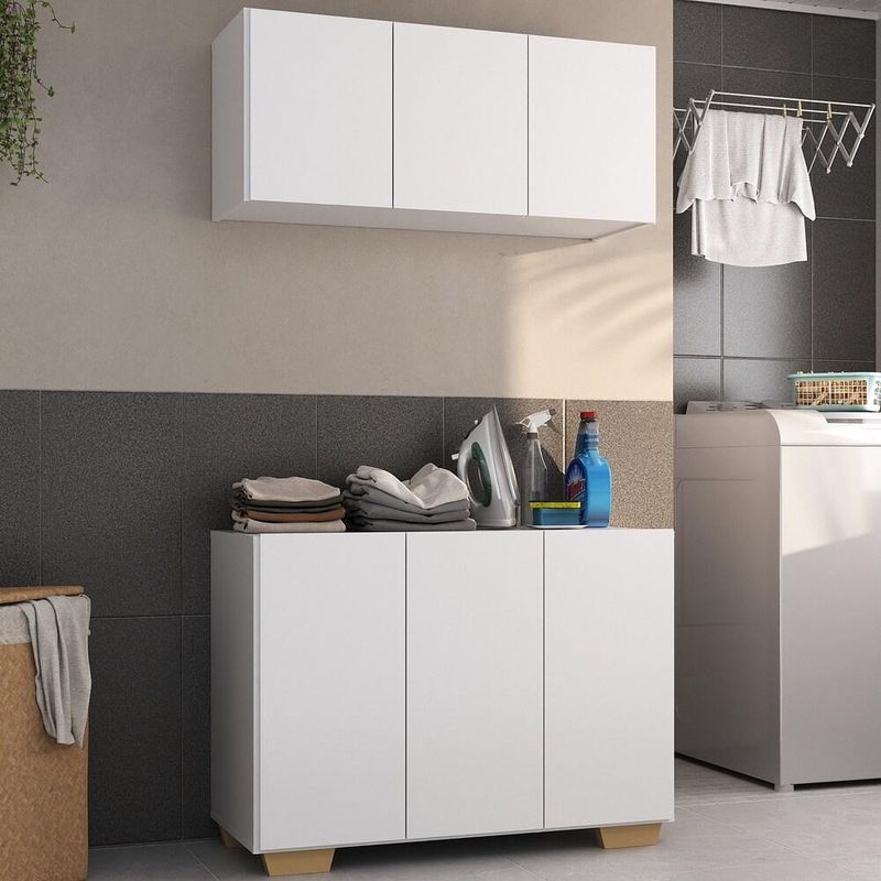 Conjunto Lavanderia Multiuso Armário Aéreo e Balcão 3 Portas Multimóveis MP5051 REF: 568879_Sicredi