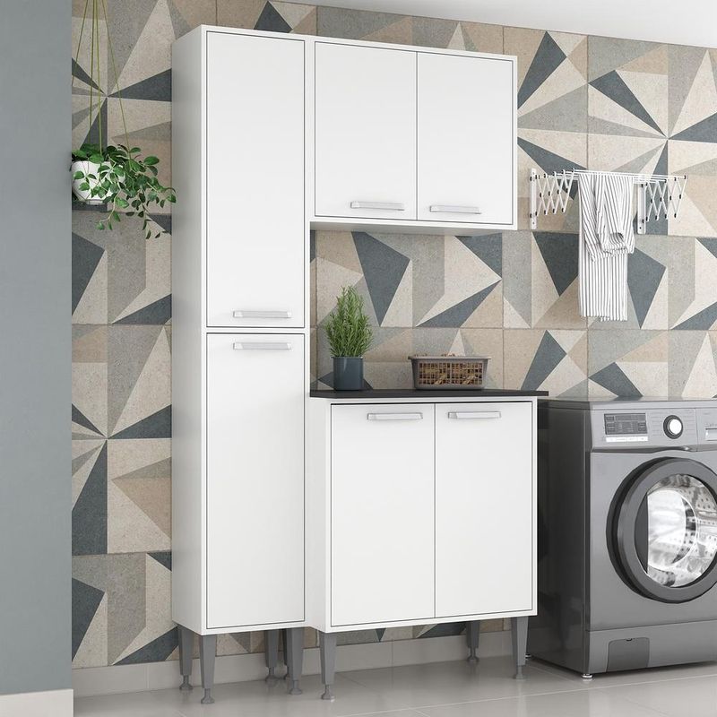 Conjunto Lavanderia Multiuso Armário e Balcão Multimóveis MP5020 Branco REF: 568882_Sicredi