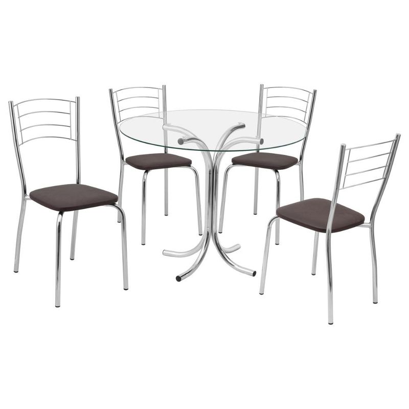 Conjunto Mesa de Jantar Redonda com Vidro 80cm com 4 Cadeiras Multimóveis CR50138 REF: 7899390818646