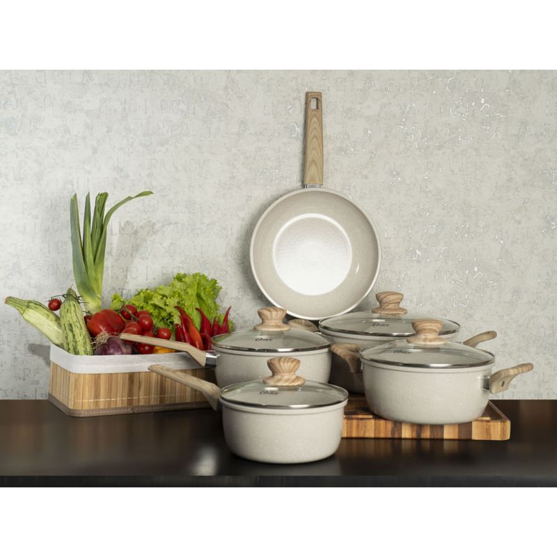 Casa e DecoraçãoUtilidades DomésticasJogo de PanelasConjunto Panelas 5 Peças Cerâmica Marble Cream Oster