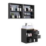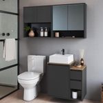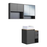 Casa e DecoraçãoMóveisBalcão e GabineteConjunto para Banheiro 120cm com 3 Peças Gabinete Suspenso Bahamas Grafite com Cuba Branca