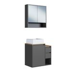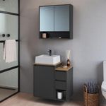 Casa e DecoraçãoMóveisBalcão e GabineteConjunto para Banheiro Gabinete Suspenso 60 com Cuba Espelheira Bologna Grafite