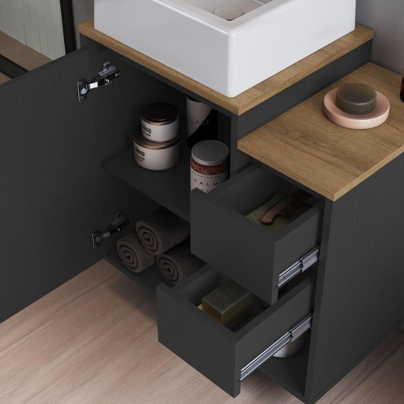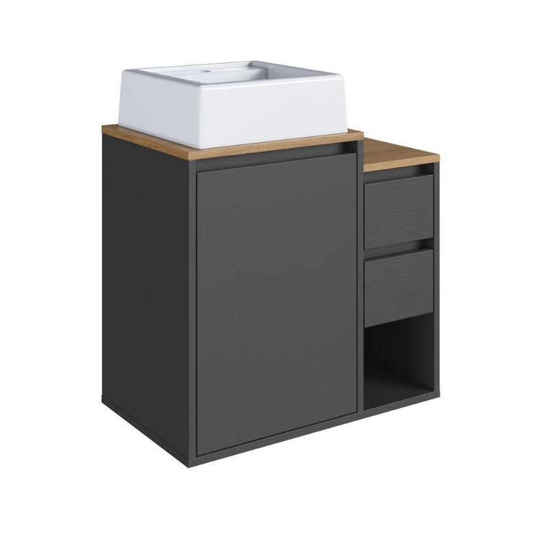 Conjunto para Banheiro Gabinete Suspenso 60 com Cuba Espelheira Bologna Grafite REF: 7899766518293