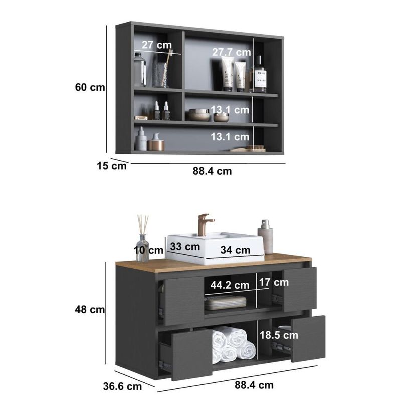 Conjunto para Banheiro Gabinete Suspenso 90 Berlin com Cuba e Espelheira Grafite REF: 7899766518538