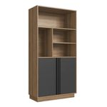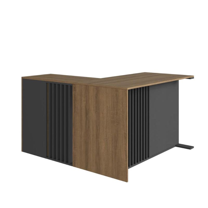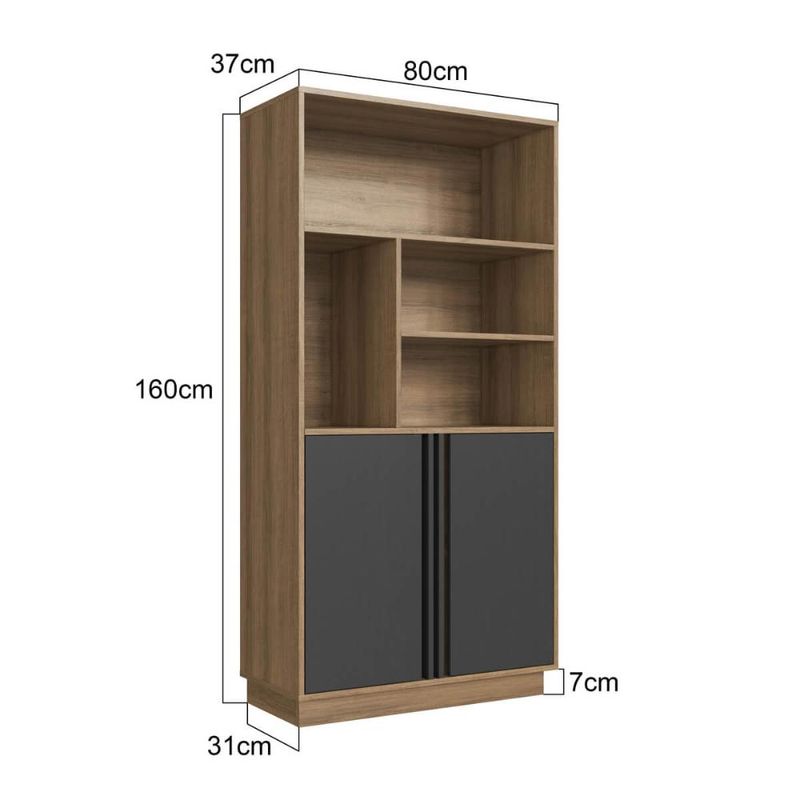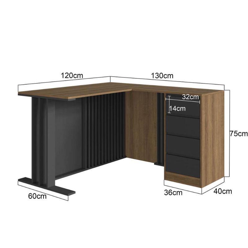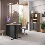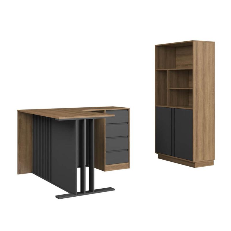 Conjunto para Escritório com 2 Peças Mesa L Armário Alto com Nichos CM4001 Mel Grafite REF: 7898744952302