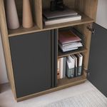 Casa e DecoraçãoMóveisArmário MultiusoConjunto para Escritório com 2 Peças Mesa L Armário Alto com Nichos CM4001 Mel Grafite