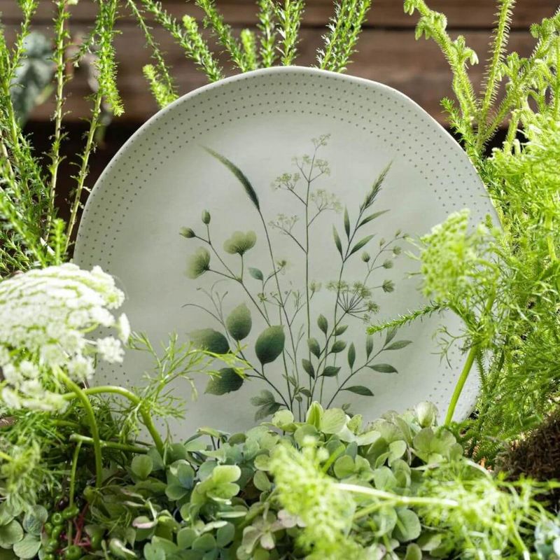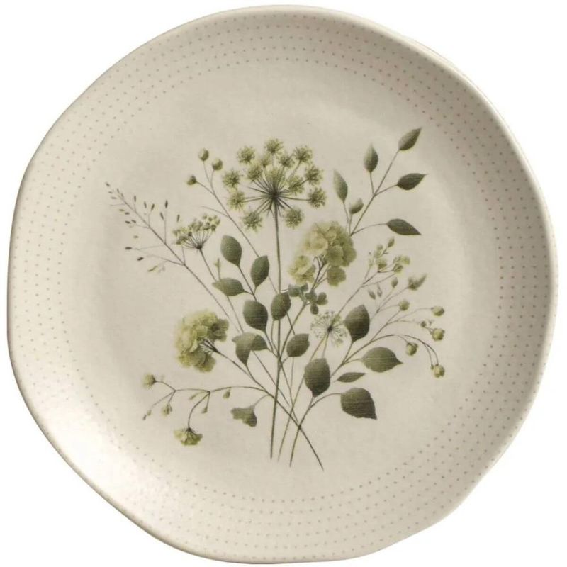Conjunto Prato Raso 26,5cm e Prato de Sobremesa 19,5cm Cerâmica Orgânico Ammi Floral Porto Brasil REF: 7898775141171