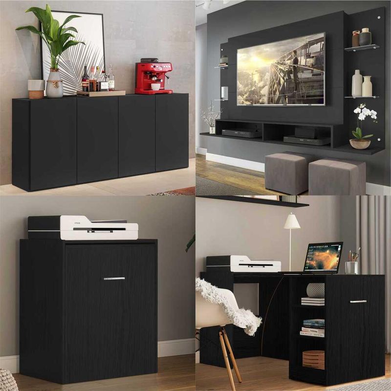 Conjunto Sala de Estar Painel TV 60" / Aparador / Mesa Dobrável Lara Multimóveis Preto REF: 578952_Sicredi