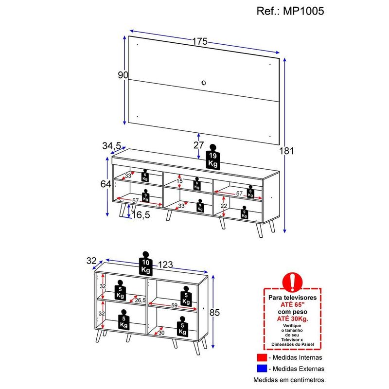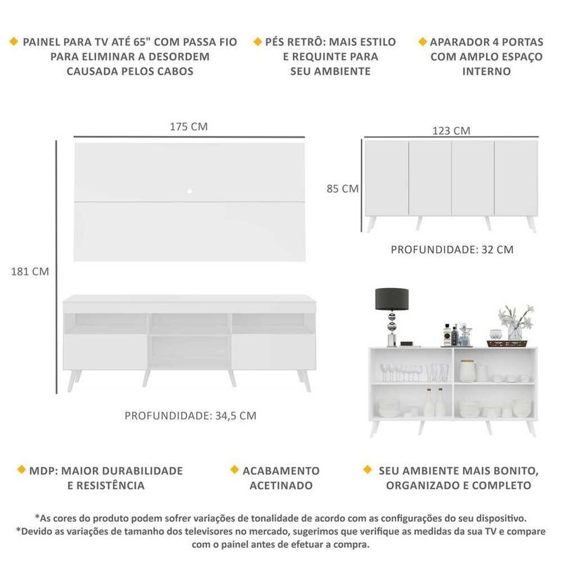Casa e DecoraçãoMóveisRack e painel de TVConjunto Sala de Estar Rack + Painel TV 65" e Aparador Retrô Sofia Multimóveis Branco