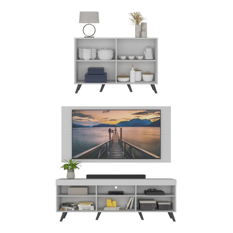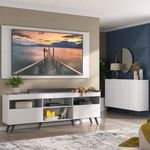Casa e DecoraçãoMóveisRack e painel de TVConjunto Sala de Estar Rack + Painel TV 65" e Aparador Retrô Sofia Multimóveis Branco/Preto