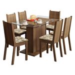 Conjunto Sala de Jantar Madesa Gales Mesa Tampo de Vidro com 6 Cadeiras - Rustic/Lírio Bege REF: 510880_Sicredi