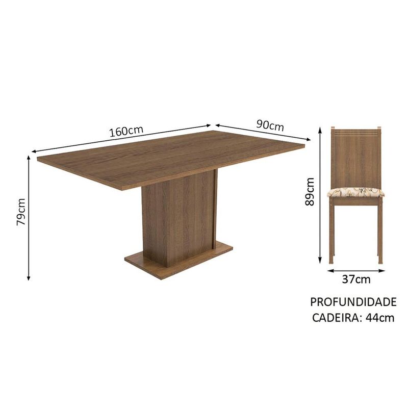 Conjunto Sala de Jantar Madesa Megan Mesa Tampo de Madeira com 6 Cadeiras - Rustic/Lírio Bege REF: 510891_Sicredi