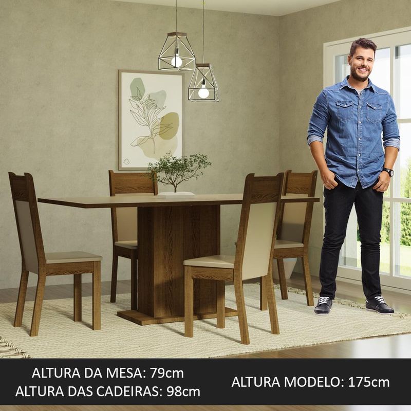 Conjunto Sala de Jantar Mesa Tampo de Madeira 4 Cadeiras Crema/Rustic/Bege Elisa Madesa REF: 513051_Sicredi