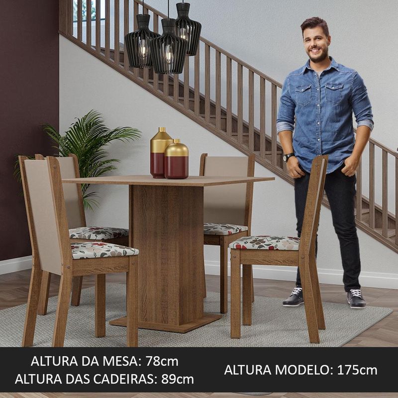 Conjunto Sala de Jantar Mesa Tampo de Madeira 4 Cadeiras Rustic/Crema/ Hibiscos Briana Madesa REF: 513095_Sicredi