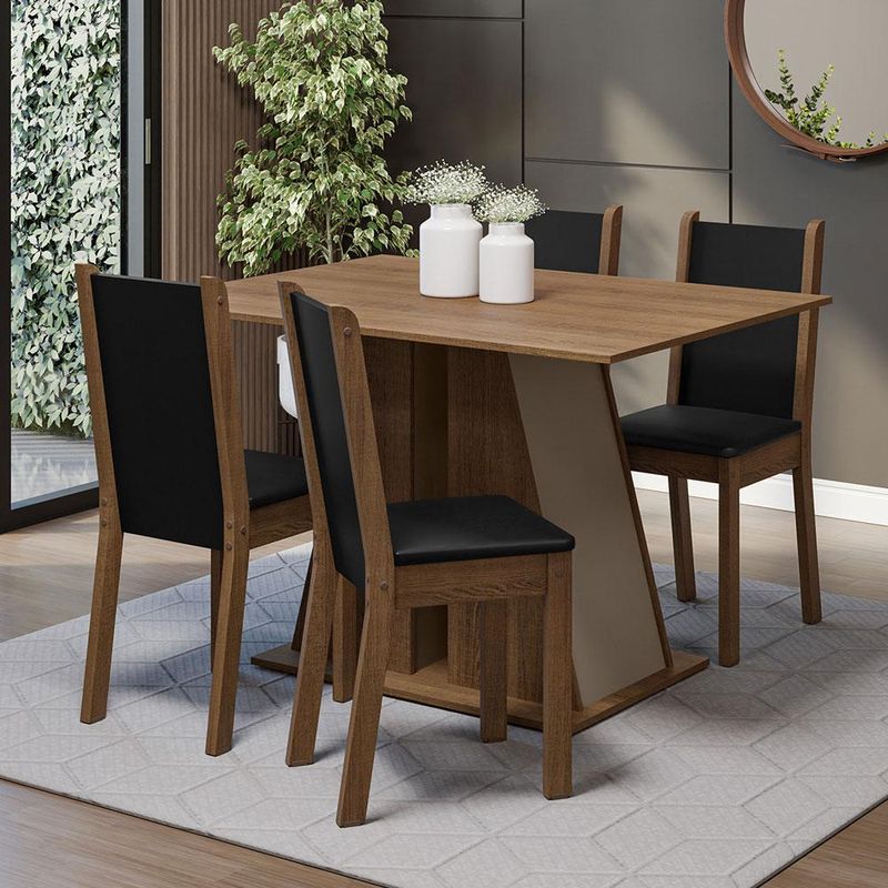 Conjunto Sala de Jantar Mesa Tampo de Madeira 4 Cadeiras Rustic/Crema/Preto Sophie Madesa REF: 513143_Sicredi