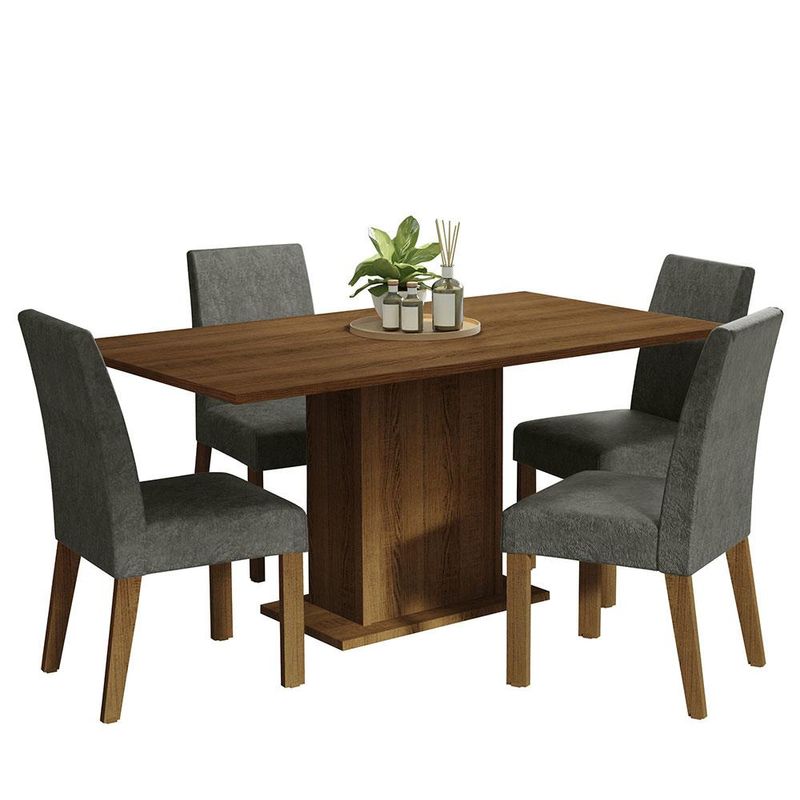 Conjunto Sala de Jantar Mesa Tampo de Madeira 4 Cadeiras Rustic/Silver Keila Madesa REF: 513220_Sicredi
