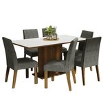 Conjunto Sala de Jantar Mesa Tampo de Madeira 6 Cadeiras Rustic/Branco/Silver Renata Madesa REF: 513244_Sicredi