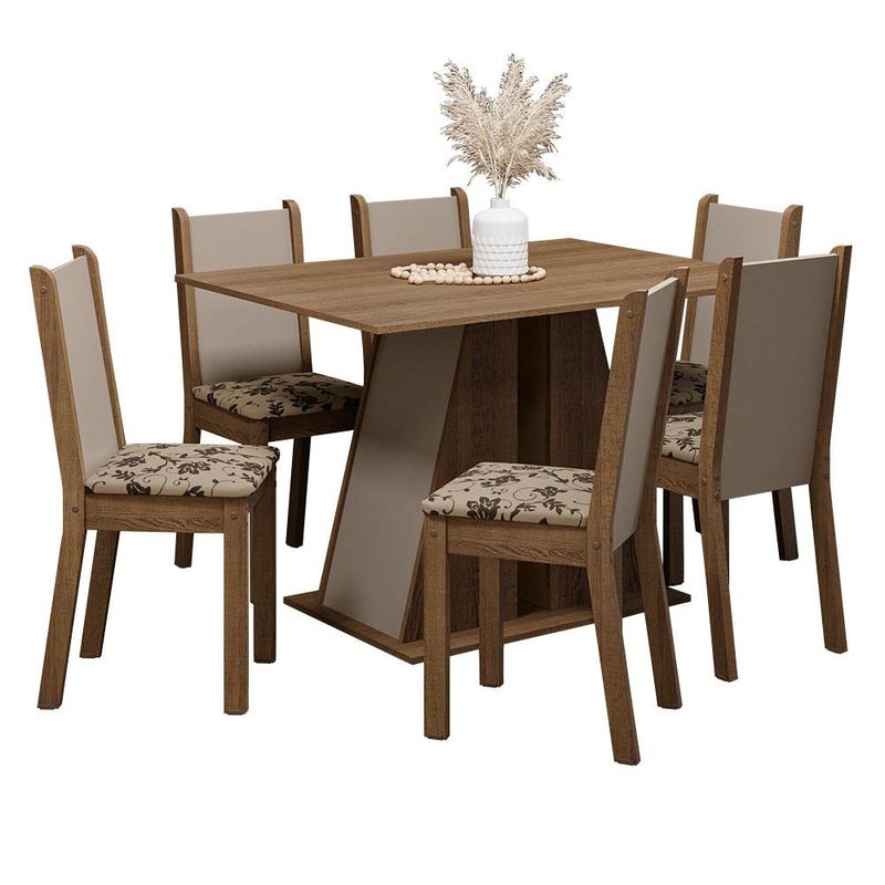 Casa e DecoraçãoMóveisConjunto de mesas e cadeirasConjunto Sala de Jantar Mesa Tampo de Madeira 6 Cadeiras Rustic/Crema/Bege Marrom Wendy Madesa