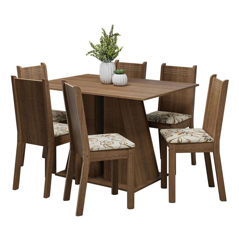 Conjunto Sala de Jantar Mesa Tampo de Madeira 6 Cadeiras Rustic/Lírio Bege Sharon Madesa REF: 513308_Sicredi
