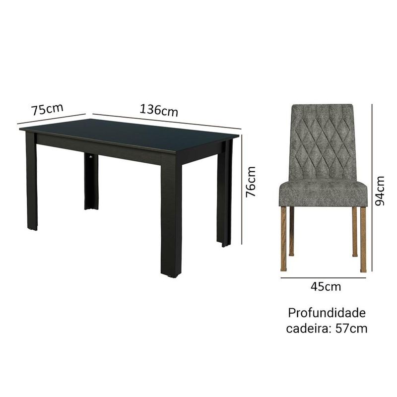 Conjunto Sala de Jantar Mesa Tampo de Madeira 6 Cadeiras Rustic/Preto/Silver Allegro Madesa REF: 745437_Sicredi