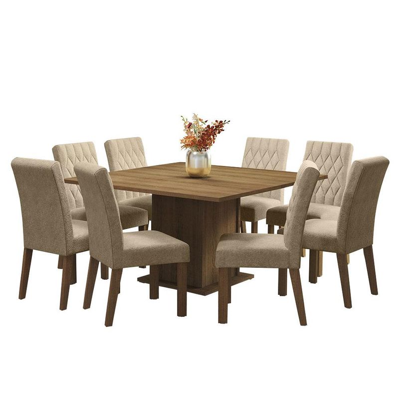 Casa e DecoraçãoMóveisConjunto de mesas e cadeirasConjunto Sala de Jantar Mesa Tampo de Madeira 8 Cadeiras Rustic/Imperial Leila Madesa