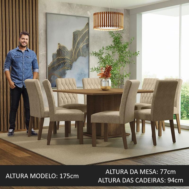 Conjunto Sala de Jantar Mesa Tampo de Madeira 8 Cadeiras Rustic/Imperial Leila Madesa REF: 513356_Sicredi