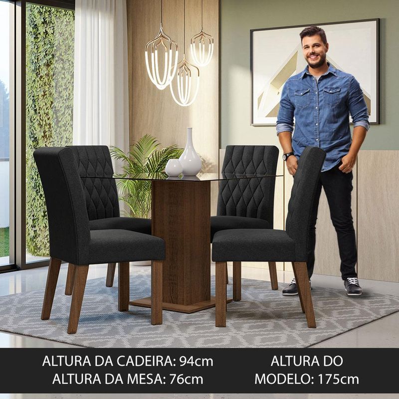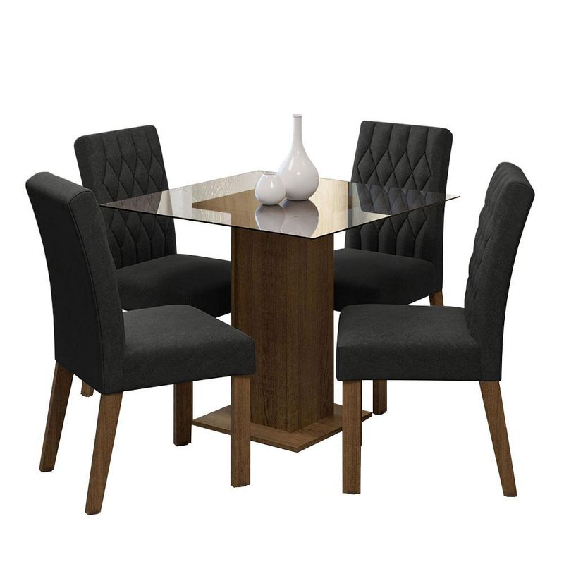 Conjunto Sala de Jantar Mesa Tampo de Vidro 4 Cadeiras Rustic/Oxford Noemi Madesa REF: 513446_Sicredi