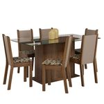 Casa e DecoraçãoMóveisConjunto de mesas e cadeirasConjunto Sala de Jantar Mesa Tampo de Vidro 6 Cadeiras Rustic/Crema/Bege Marrom Yolanda Madesa