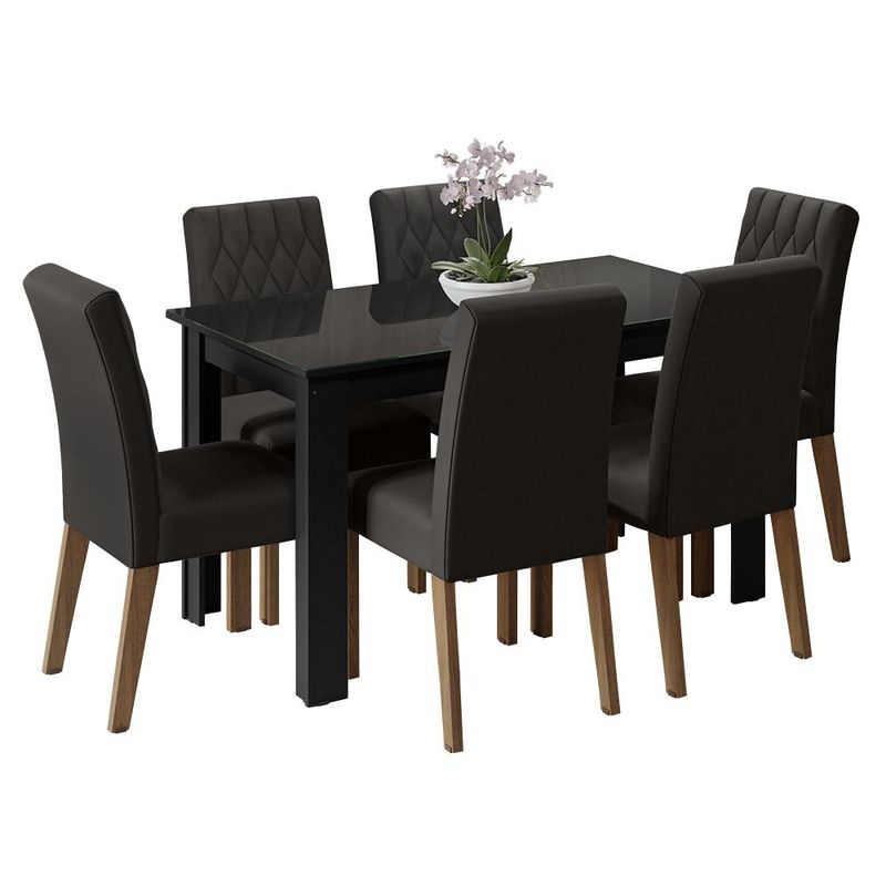 Casa e DecoraçãoMóveisConjunto de mesas e cadeirasConjunto Sala de Jantar Mesa Tampo de Vidro 6 Cadeiras Rustic/Preto/Oxford Odara Madesa