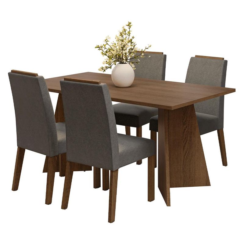 Conjunto Sala de Jantar Tampo de Madeira 4 Cadeiras Rustic/Silver Évora Madesa REF: 7891760975225